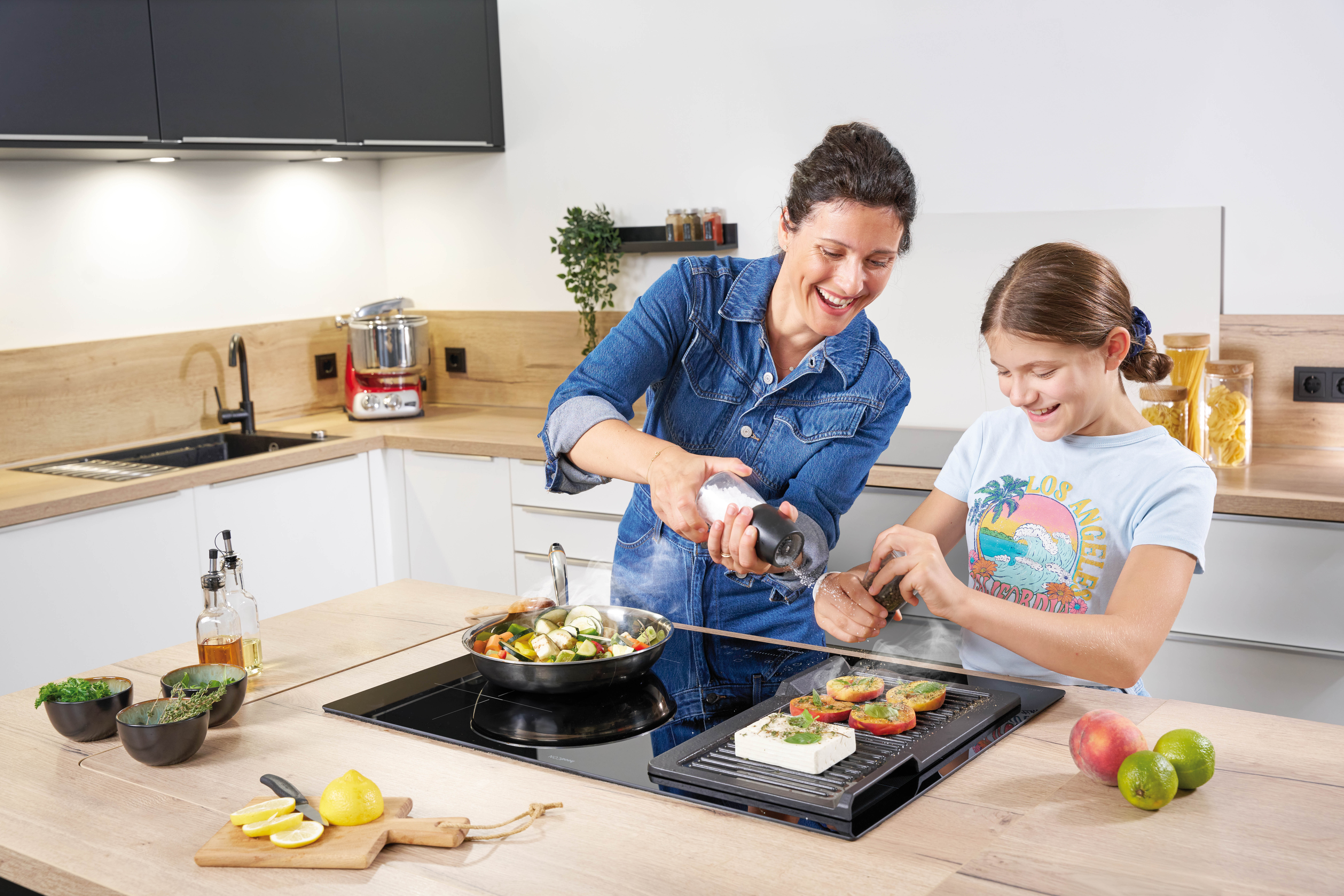 Das Besondere: Voller Stauraum im Schrank darunter. Die Besteckschublade und Schubladenauszüge sind auch direkt unter dem Kochfeld möglich, sogar bis zur vollen Tiefe. Durchdacht sogar bis zum Einbau: Dank unkomplizierter Technik ohne Werkzeug in 20 Minuten installiert.